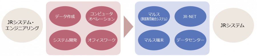 私たちJRSE(株式会社ジェイアールシステム・エンジニアリング)は、MARSの開発・運用を手がけるJRシステム(鉄道情報システム株式会社)の100%出資によって生まれた会社。